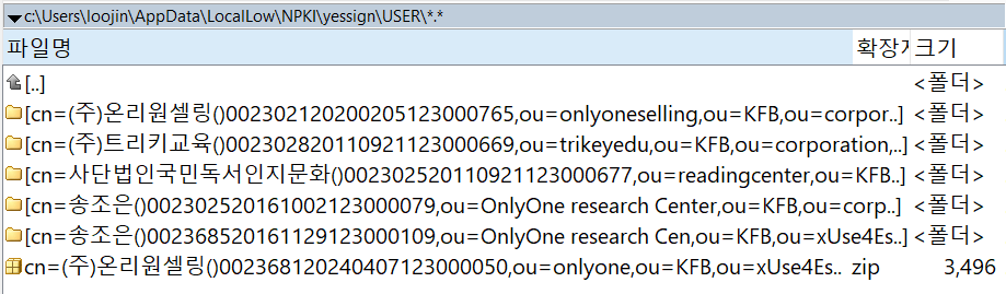 c:\Users\loojin\AppData\LocalLow\NPKI\yessign\USER\